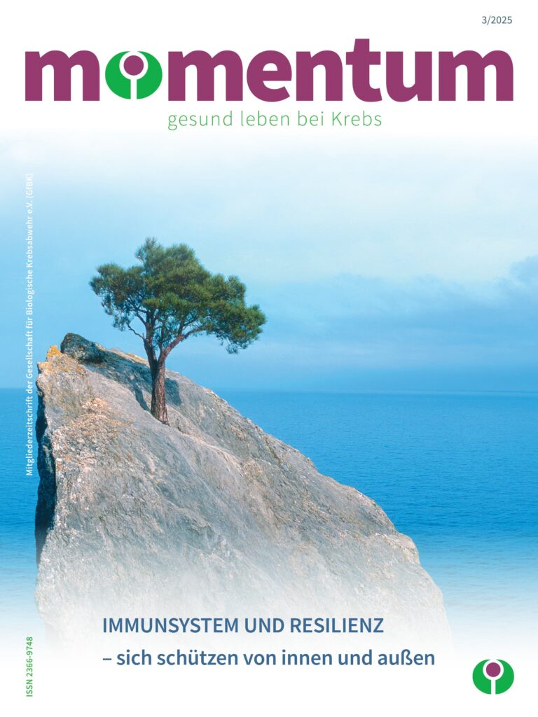 Artikel zu Schwellenzeiten und Krebs, erschienen in der Zeitschrift momentum 3/2025 von biokrebs.de